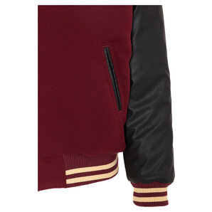 The cool bomber jacket by King Kerosin with its embroideries on the front and back revives the Retro Sports look true to the original. The mix of imitation leather and fleece is high-quality processed and completely lined inside with a quilted padding. Equipped with piped pockets on the outside, there is also a slide-in pocket for stowing your wallet or mobile phone in the lining.