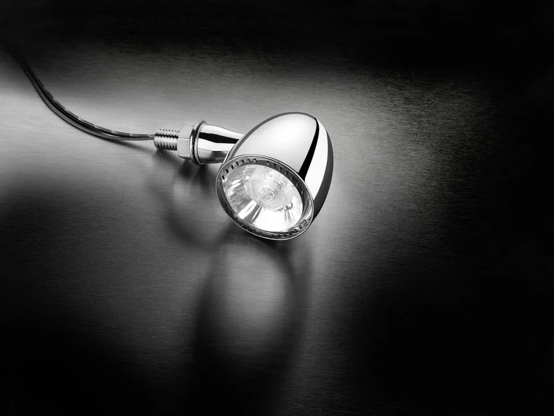The classic bullet shape has been re-interpreted, and in an ideal size. Flowing lines and perfect transitions. You can't help but take a long look at this stylish turn signal, as your eyes follow its elegant form. The light from the Bullet 1000 is a real visual statement, shining or flashing strong and clear. The feature that makes the Bullet 1000 turn signal special is the unique light ring, which shines powerfully and lends a whole new appearance.